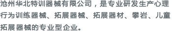 滄州華北特訓器械有限公司成立于2002年,是專業研發生產心理行為訓練器械、拓展器械、拓展器材、攀巖、兒童拓展器械的專業型企業,并通過ISO-9001質量管理體系認證及ISO-14001環境管理體系認證,致力于各職業群體提供的心理行為訓練器械、拓展器械、攀巖、兒童拓展器械等設備,使之不斷提升心理健康水平、充分開發自我潛能。我公司竭誠為廣大客戶提供專業化各類心理行為訓練器械相關產品和服務。